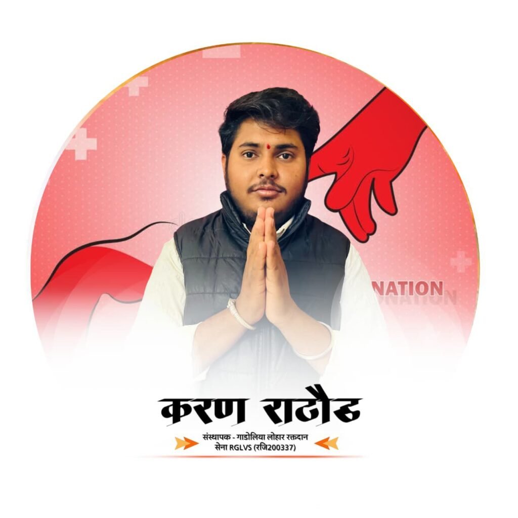 गाडोलिया लोहार समाज में सेवा, सहयोग एवं मानवता के कार्यों को नई दिशा देने के उद्देश्य से राजस्थान गाड़िया लोहार विकास समिति के तत्वावधान में “गाडोलिया लोहार रक्तदान सेना” का गठन 1 मार्च 2026 को किया गया। इस ऐतिहासिक पहल के पीछे समाज के सक्रिय युवा नेतृत्वकर्ता करण भंवरलाल गाडिया लोहार (प्रदेश मंत्री) का विशेष योगदान रहा, जिनकी प्रेरणा और नेतृत्व में इस संगठन की नींव रखी गई।